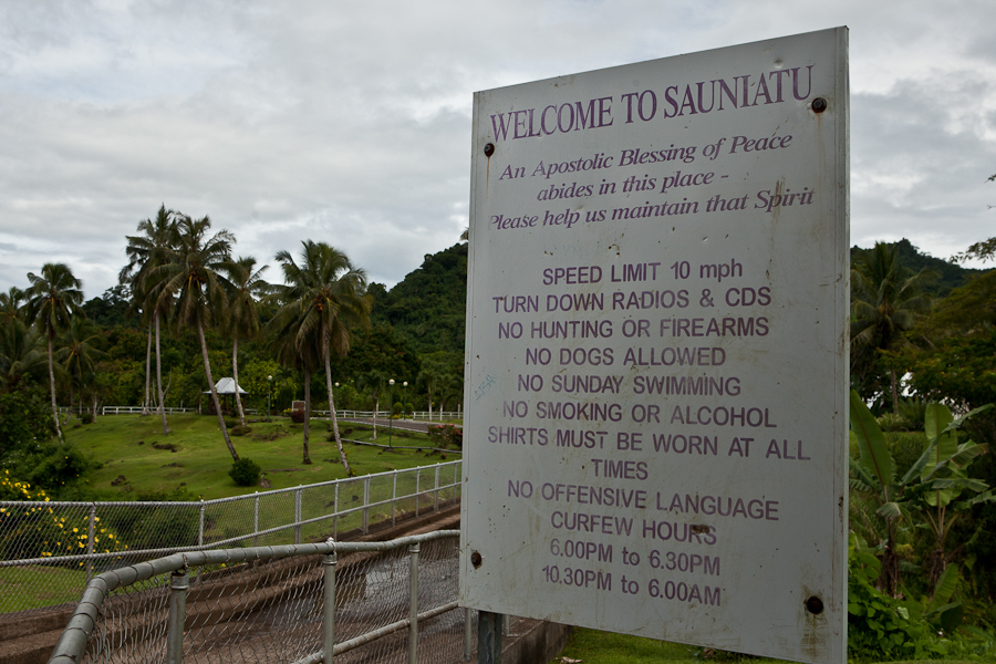 Samoa's system of government is interesting. Although there is a central government, most of the power rests with the village chiefs called Matai. Each village chief makes the rules for his own village. We also learned that if someone were to break the law, it would be the village that would take care of the situation, punish or impose a penalty. We learned some of the rules of Sauniatu by reading this sign posted as you enter the village.